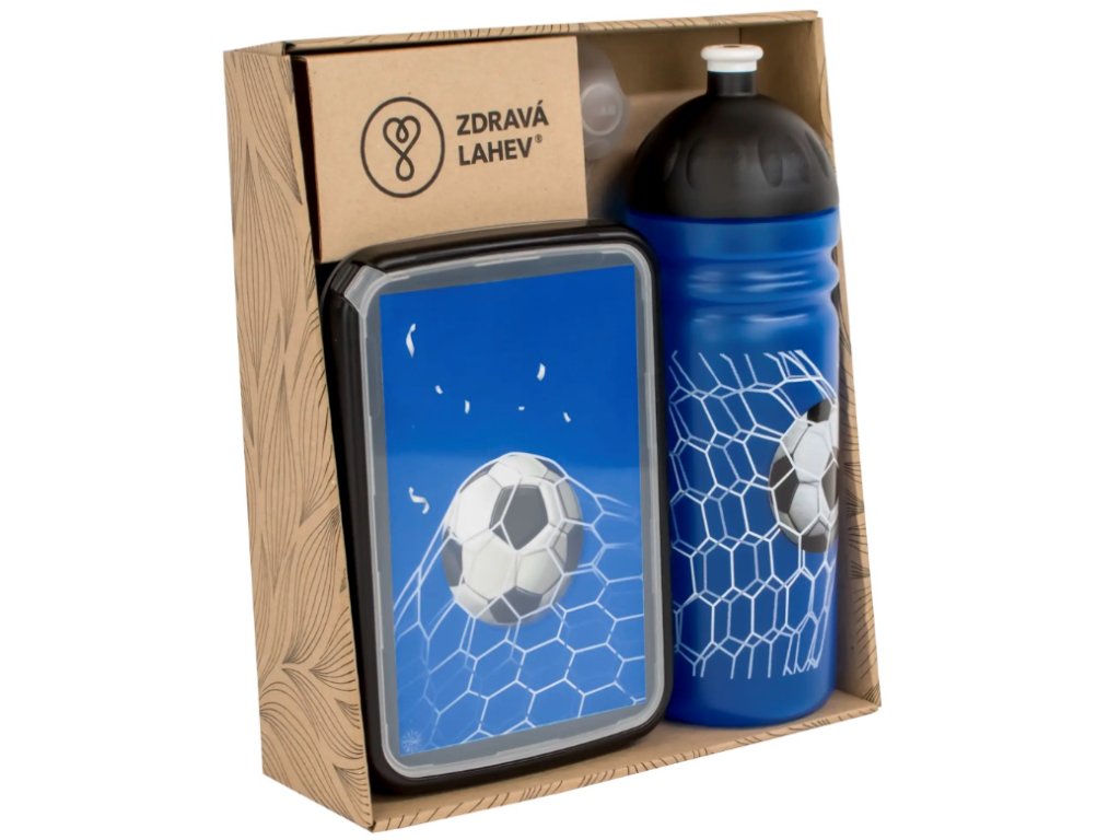 zdravá lahev, zdravá sváča, svačinový set, lahev 0,7 l, box na svačinu, Goal motiv, fotbalová lahev, česká výroba, školní set, ekologická lahev, lahev bez BPA, sportovní lahev.