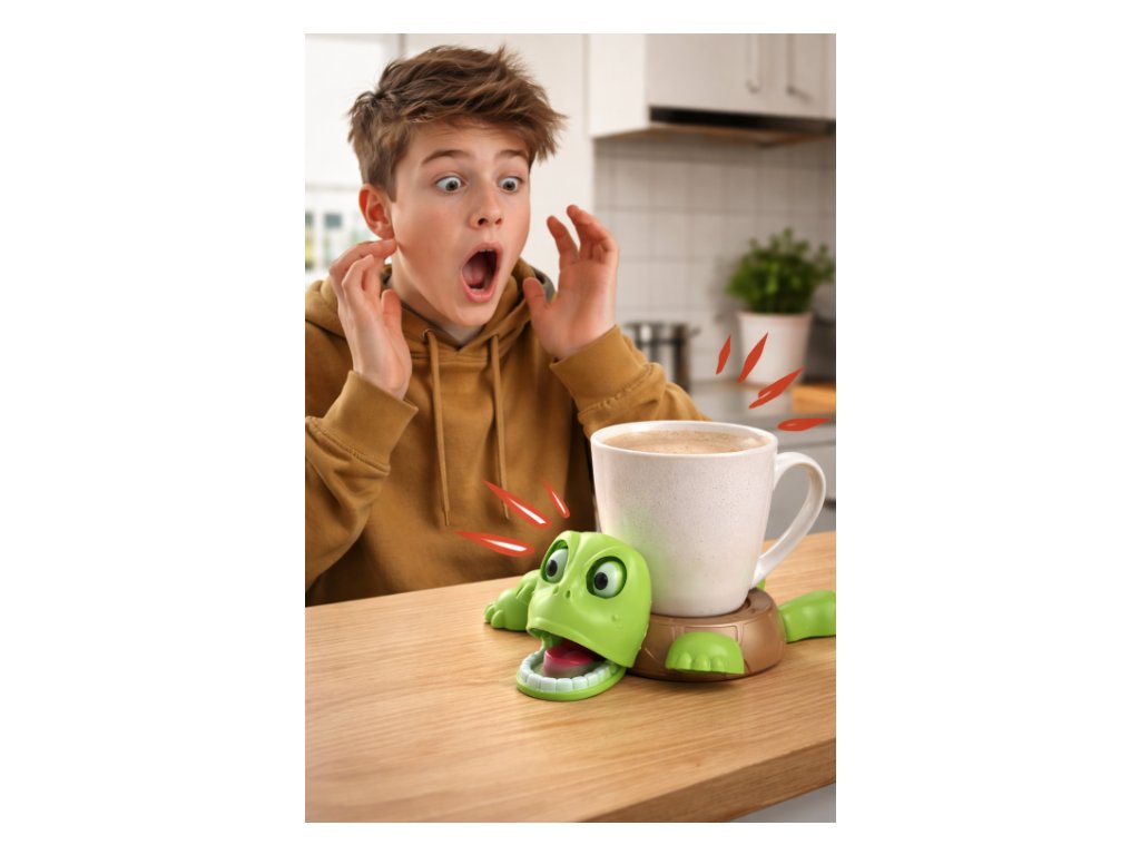Hledáte originální a zábavný dárek nebo žertík pro přátele? Tato screaming želva/podtácek vypadá na první pohled nenápadně, ale jakmile někdo zvedne hrníček, želva se vynoří s otevřenou tlamou a vydá strašidelný výkřik, který všechny překvapí!
