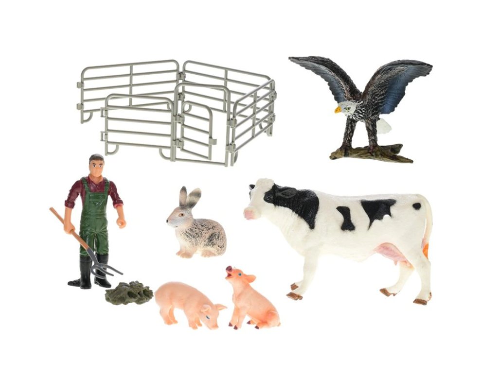 Ve variantě A najdete farmáře s vidlemi, který se stará o svou kravičku, dvě roztomilá selátka, majestátního orla a rychlého zajíce. Skvělý set pro malé dobrodruhy, kteří milují život na farmě!