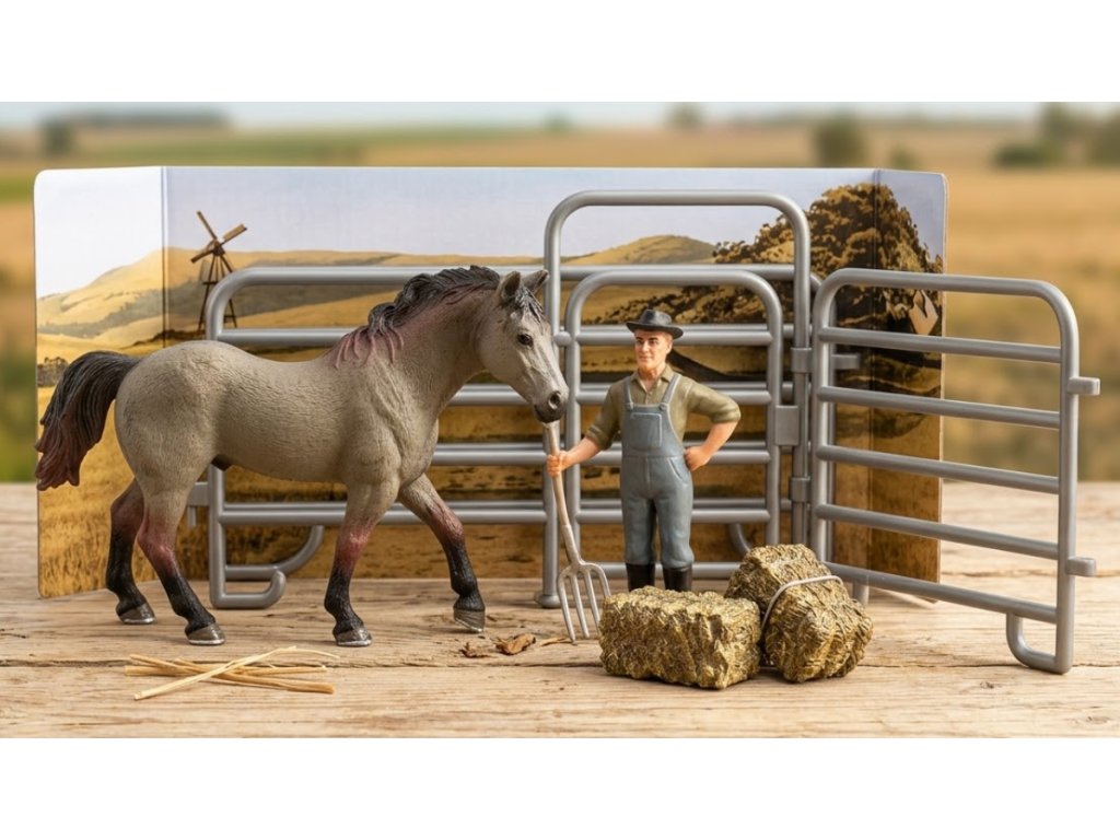 ZooLandia Kůň šedý, farmář a doplňky